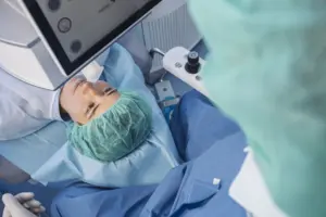In the treatment room, numbing eye drops ensure a painless experience. A femtosecond laser then creates a precise corneal flap.